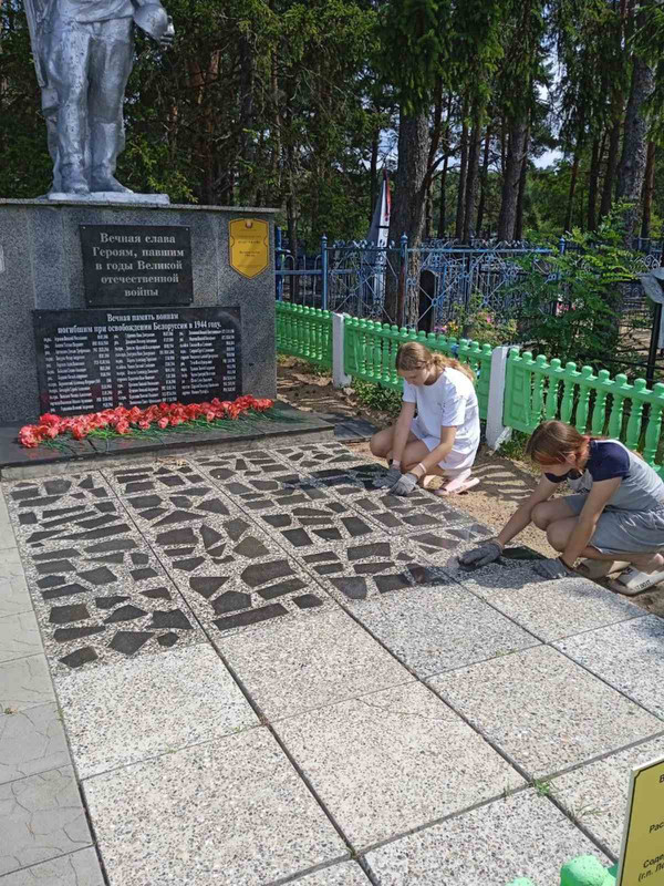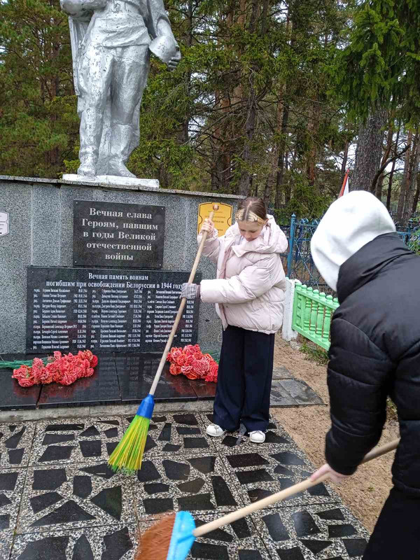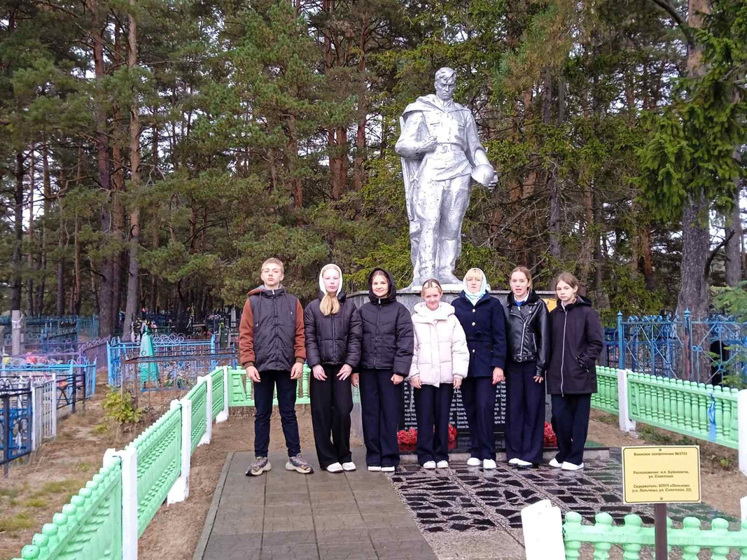 Учащиеся Буйновичской школы принимают активное участие в республиканской акции "Вахта Памяти -2025", они участвуют в благоустройстве местных воинских захоронений "Обелиск".